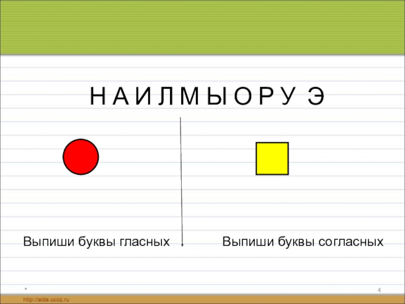 Н А И Л М Ы О Р У Э*Выпиши буквы гласныхВыпиши буквы согласных