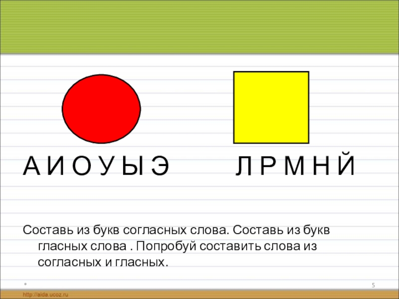 Составь из букв согласных слова. Составь из букв гласных слова . Попробуй составить слова из согласных и гласных.