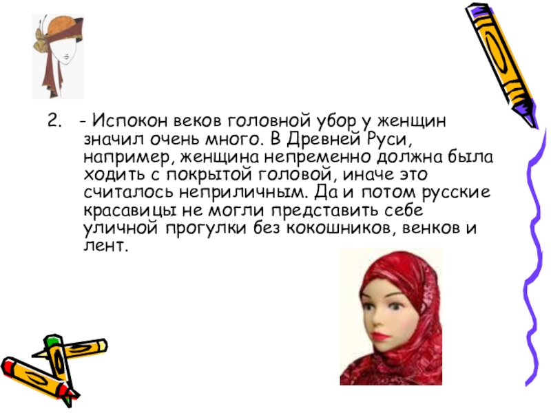 Слайд 32. - Испокон веков головной убор у женщин значил очень