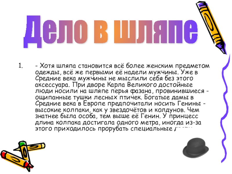 Слайд 2- Хотя шляпа становится всё более женским предметом одежды, всё же