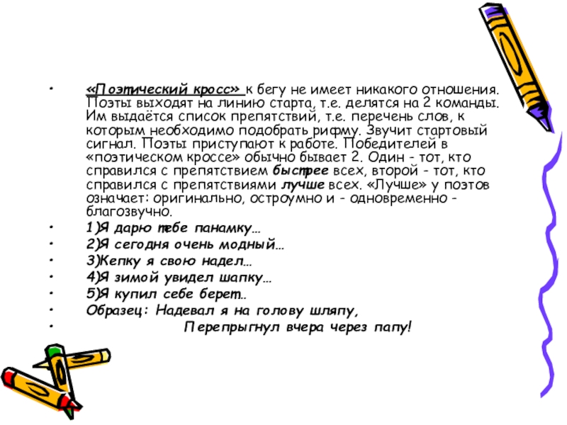 Слайд 13«Поэтический кросс» к бегу не имеет никакого отношения. Поэты выходят на