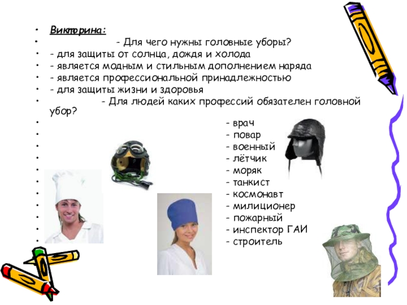 - Для людей каких профессий обязателен головной убор?