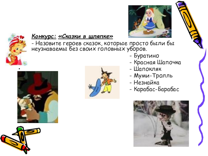 Слайд 9Конкурс: «Сказки в шляпке»
