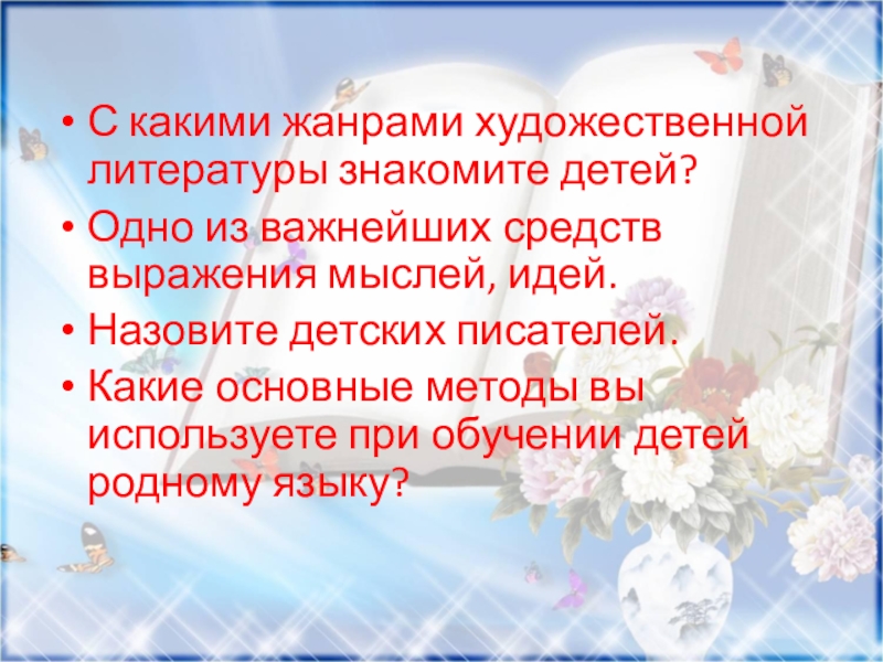 Слайд 13С какими жанрами художественной литературы знакомите детей?
