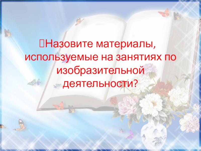 Слайд 5Назовите материалы, используемые на занятиях по изобразительной