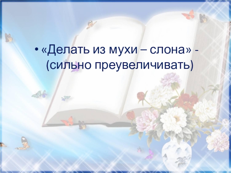 Слайд 30«Делать из мухи – слона» - (сильно преувеличивать)