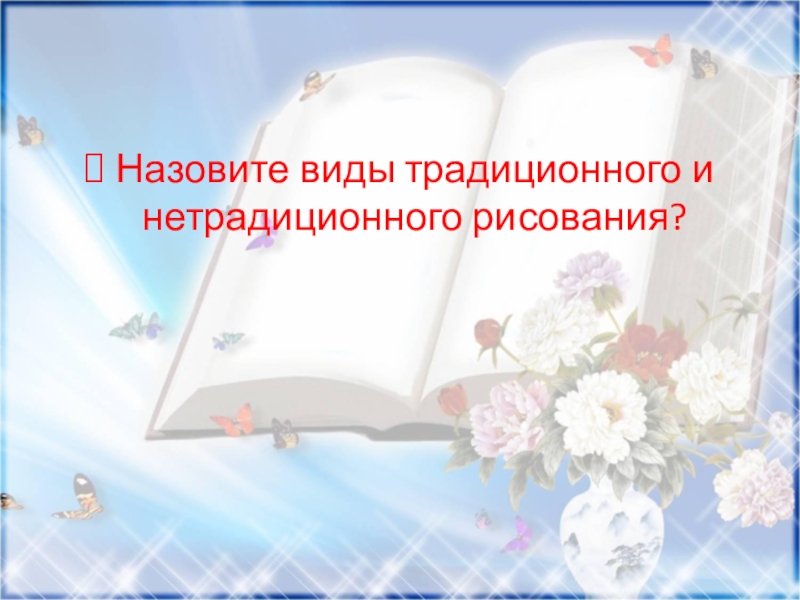 Слайд 9Назовите виды традиционного и нетрадиционного рисования?
