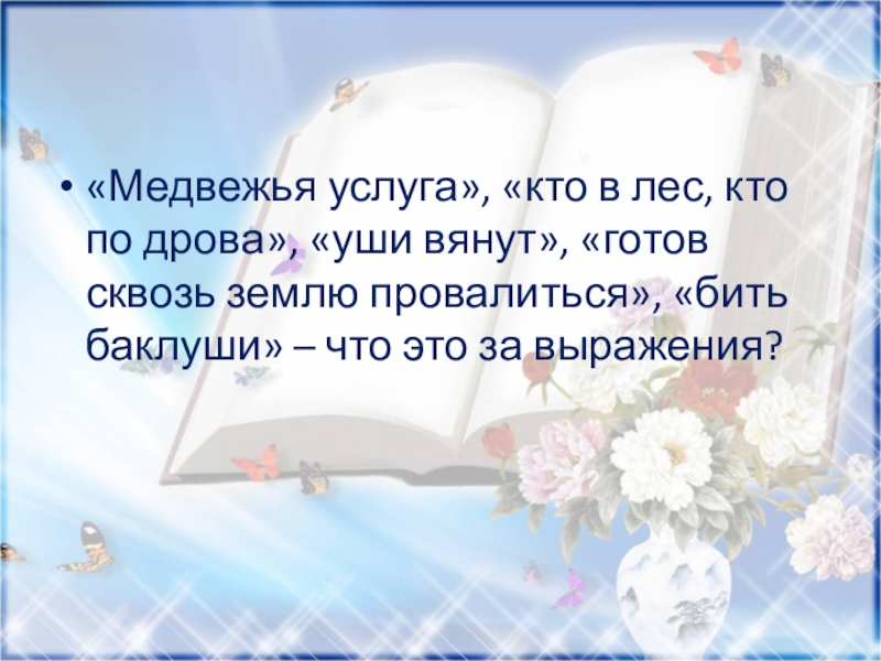 Слайд 17«Медвежья услуга», «кто в лес, кто по дрова», «уши вянут», «готов
