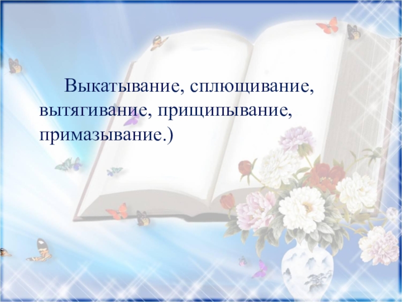 Слайд 12 Выкатывание, сплющивание, вытягивание, прищипывание, примазывание.)