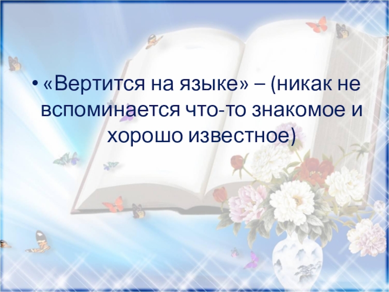 Слайд 24«Вертится на языке» – (никак не вспоминается что-то знакомое и хорошо