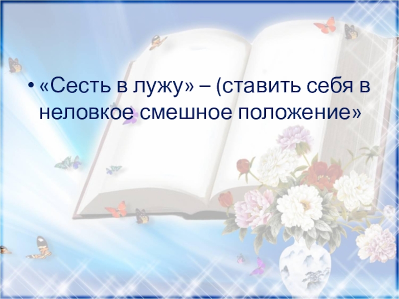 Слайд 32«Сесть в лужу» – (ставить себя в неловкое смешное положение»