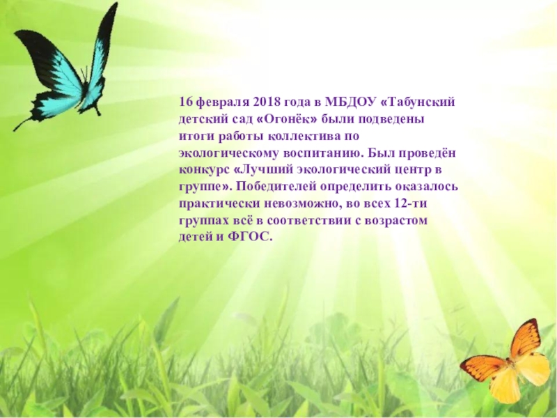 16 февраля 2018 года в МБДОУ «Табунский детский сад «Огонёк» были подведены итоги работы коллектива по экологическому