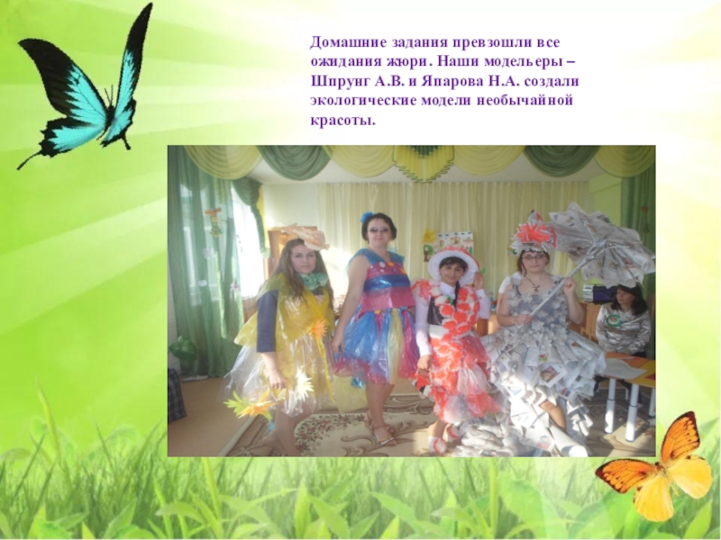 Слайд 5Домашние задания превзошли все ожидания жюри. Наши модельеры – Шпрунг А.В.