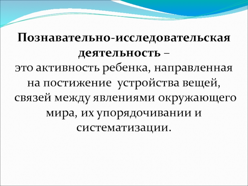 Слайд 16Познавательно-исследовательская деятельность – это активность ребенка, направленная на постижение устройства вещей,