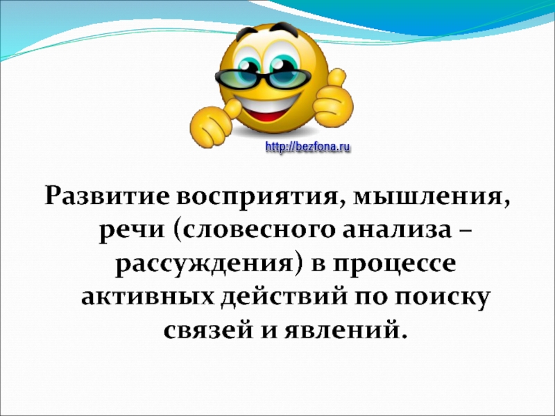 Развитие восприятия, мышления, речи (словесного анализа – рассуждения) в процессе активных