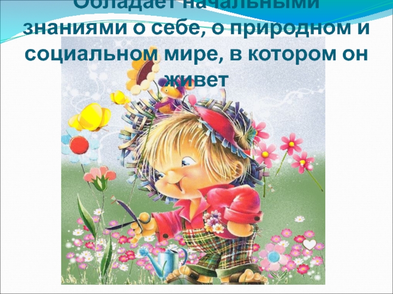 Слайд 11Обладает начальными знаниями о себе, о природном и социальном мире, в