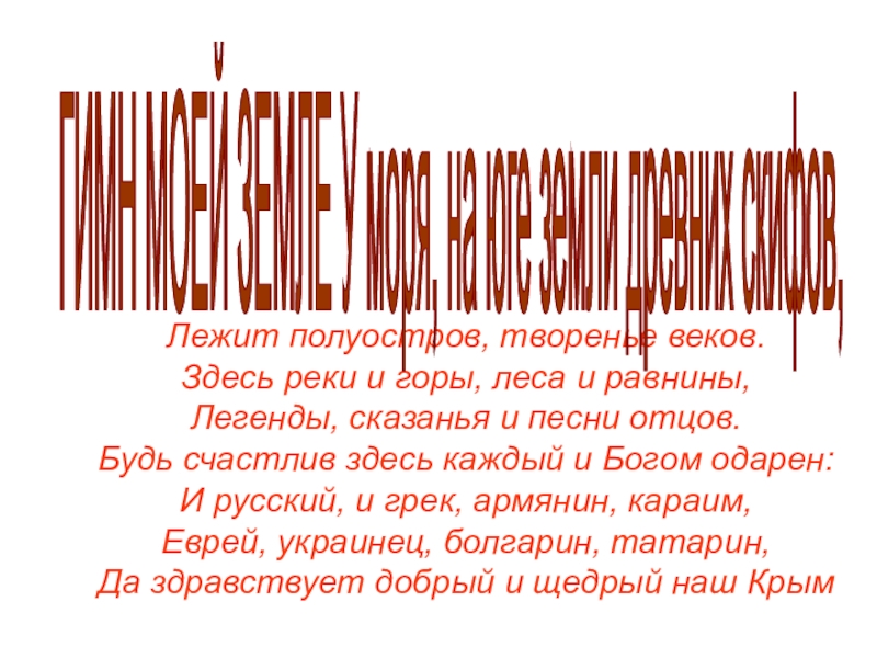 ГИМН МОЕЙ ЗЕМЛЕ У моря, на юге земли древних скифов,