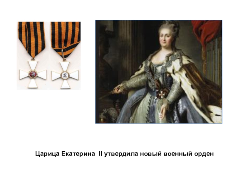 Слайд 9Царица Екатерина II утвердила новый военный орден