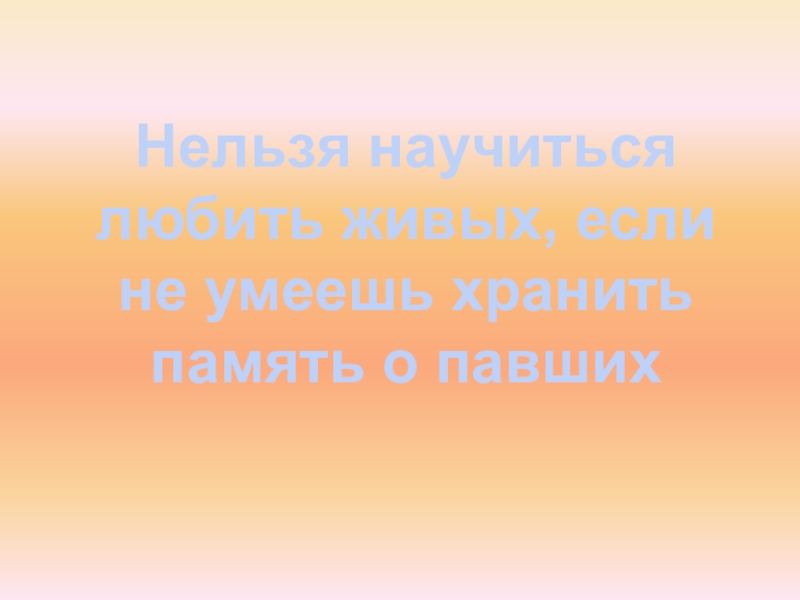 Слайд 19Нельзя научиться любить живых, если не умеешь хранить память о павших
