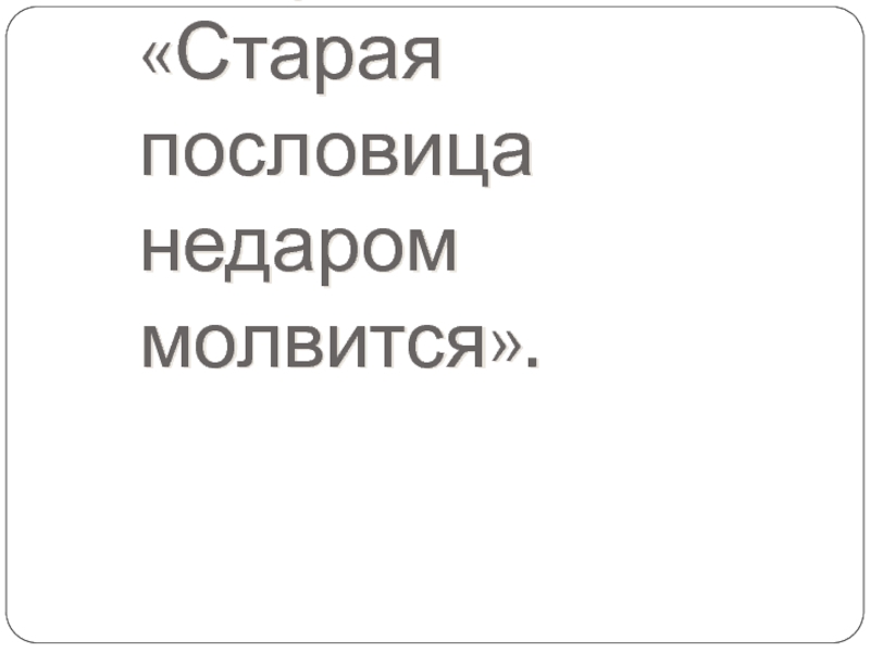 «Старая пословица недаром молвится».