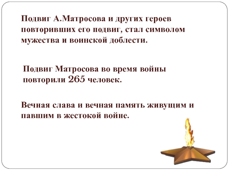Слайд 25Подвиг А.Матросова и других героев повторивших его подвиг, стал символом мужества