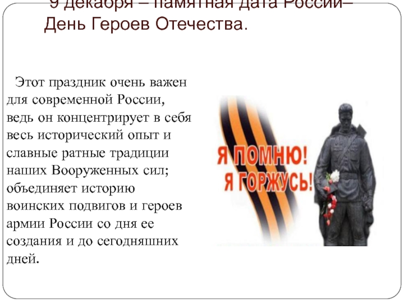 9 декабря – памятная дата России– День Героев Отечества.
