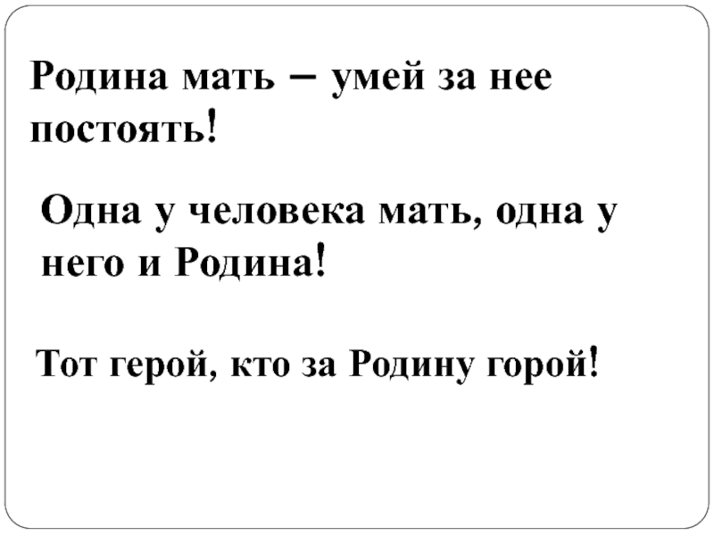 Слайд 39Одна у человека мать, одна у него и Родина!