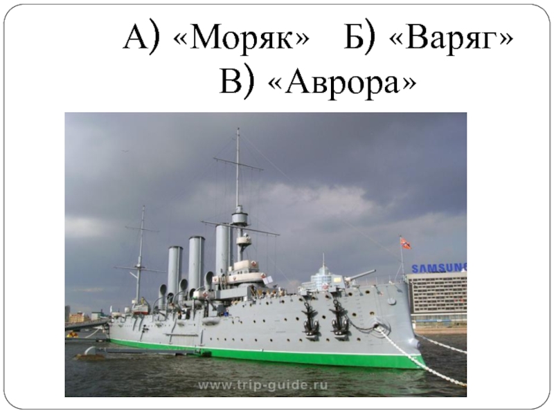 Слайд 42А) «Моряк» Б) «Варяг» В) «Аврора»