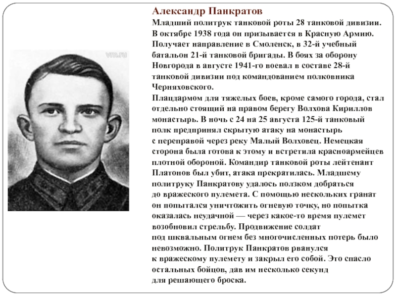 Слайд 8Панкратов Александр Константинович - политрук роты 125-го танкового полка 28-й танковой