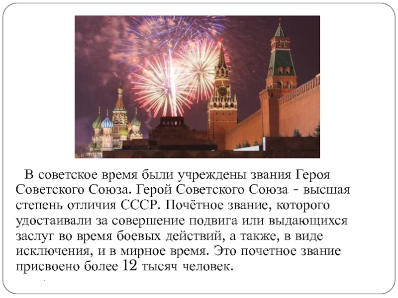 Слайд 5 В советское время были учреждены звания Героя Советского