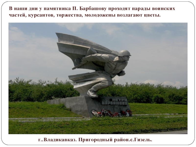 Слайд 24В наши дни у памятника П. Барбашову проходят парады воинских частей,