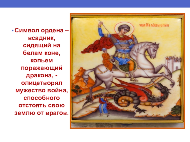 - олицетворял мужество война, способного отстоять свою землю от врагов.