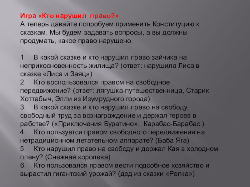 Итак ,когда человек рождается на свет, он уже имеет право на жизнь, на гражданство, образование, медицинское обслуживание, свободу, отдых, труд и т.д.