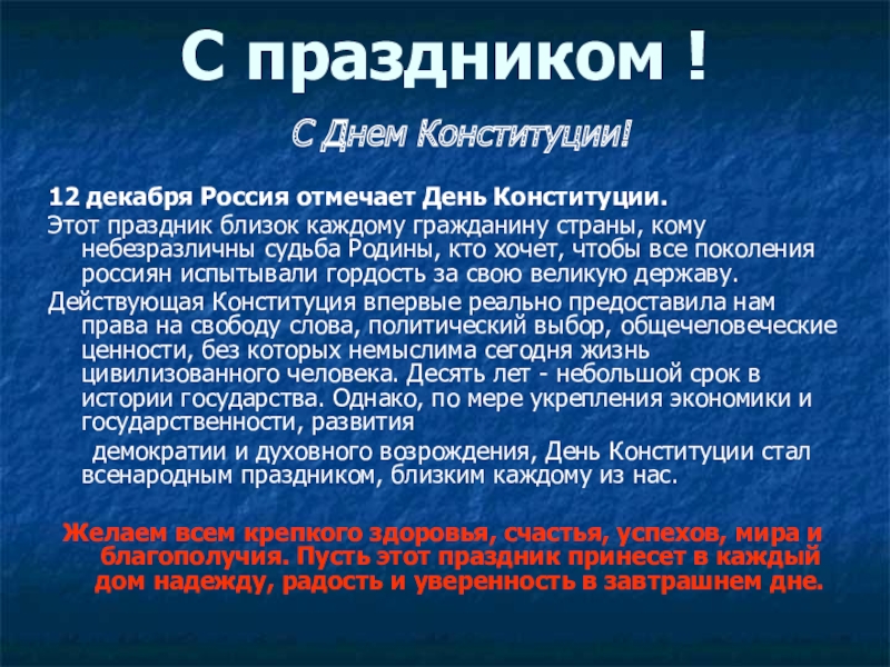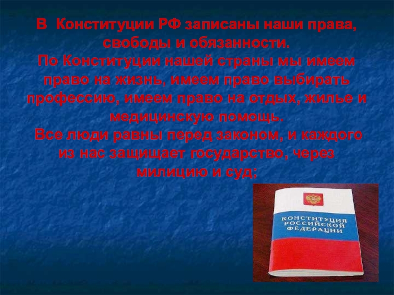 В Конституции РФ записаны наши права, свободы и обязанности.
