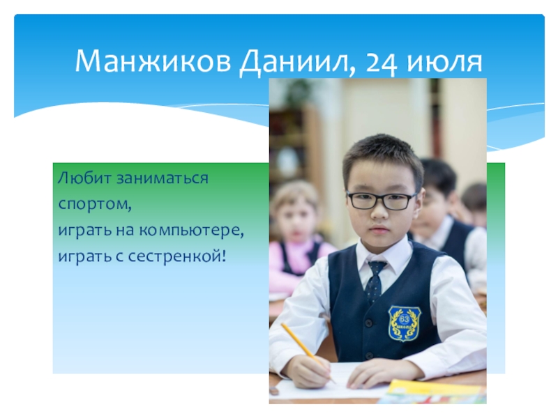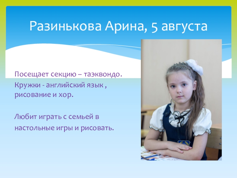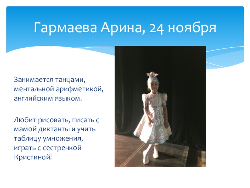 Слайд 29Занимается танцами, ментальной арифметикой, английским языком.