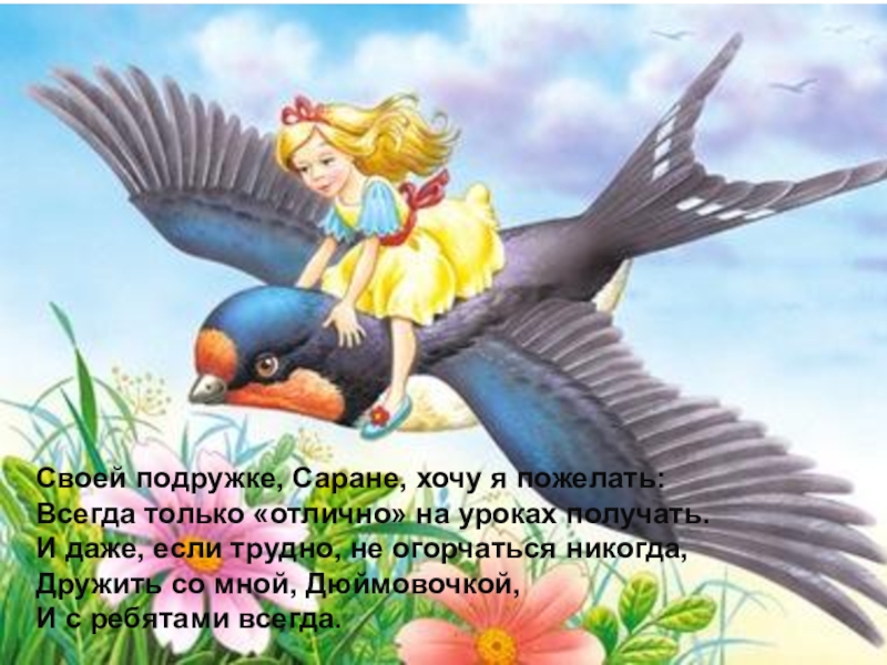 Слайд 23Своей подружке, Саране, хочу я пожелать:
