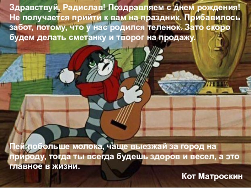 Слайд 18Здравствуй, Радислав! Поздравляем с днем рождения! Не получается прийти к вам