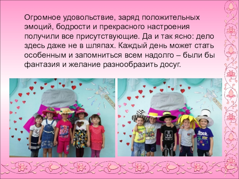 руками детей и родителей. Сколько разнообразных шляп было представлено на празднике.