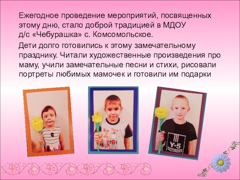 Презентация, доклад День Матери в старшей группе Солнышко