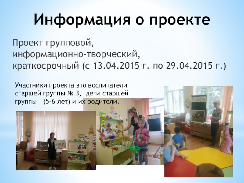 Участники проекта это воспитатели старшей группы № 3, дети старшей группы (5-6 лет) и их родители.