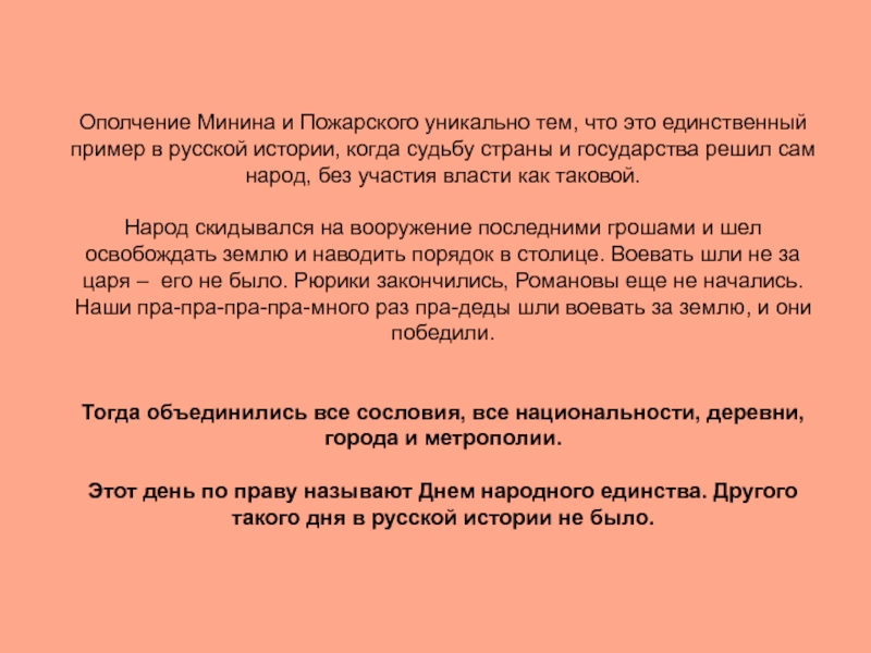 Слайд 4Ополчение Минина и Пожарского уникально тем, что это единственный пример в