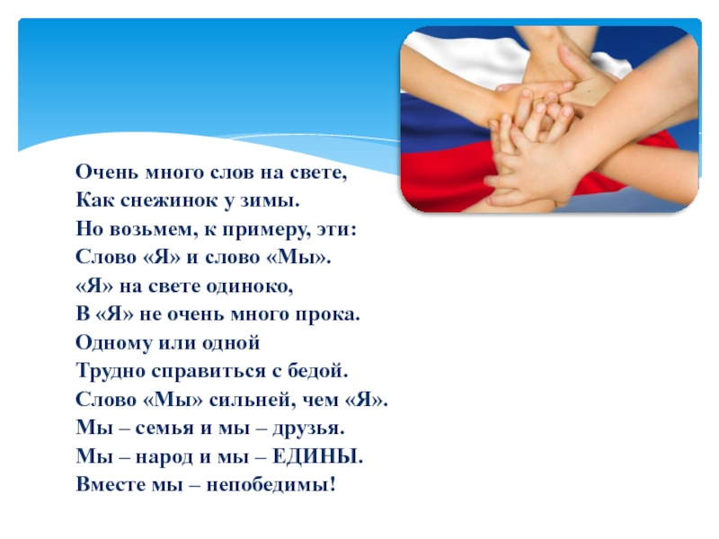 Будьте едиными и живите мирно со всеми народами нашей необъятной Родины