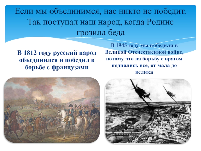 В 1812 году русский народ объединился и победил в борьбе с французами