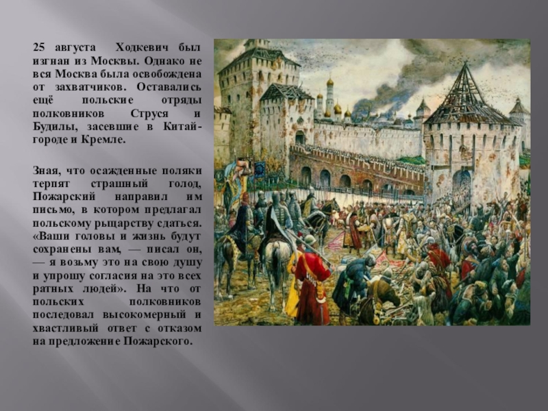 Слайд 1025 августа Ходкевич был изгнан из Москвы. Однако не вся Москва