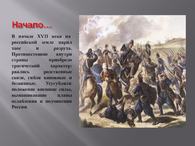Слайд 4В начале XVII века на российской земле царил хаос и разруха.