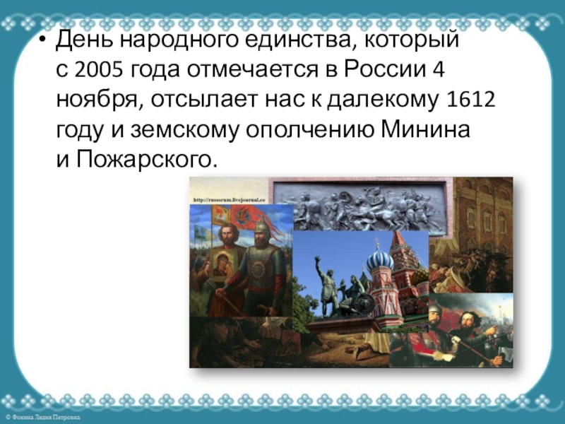 нас к далекому 1612 году и земскому ополчению Минина и Пожарского.