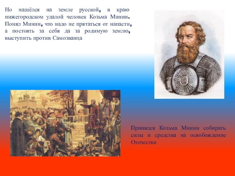 Принялся Козьма Минин собирать силы и средства на освобождение Отечества