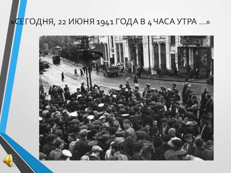 Слайд 2«СЕГОДНЯ, 22 ИЮНЯ 1941 ГОДА В 4 ЧАСА УТРА …»