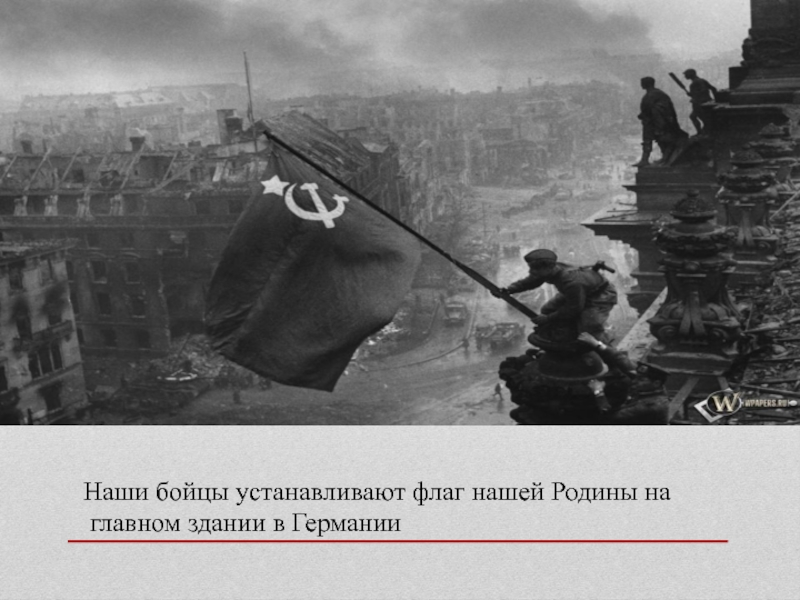 Наши бойцы устанавливают флаг нашей Родины на главном здании в Германии