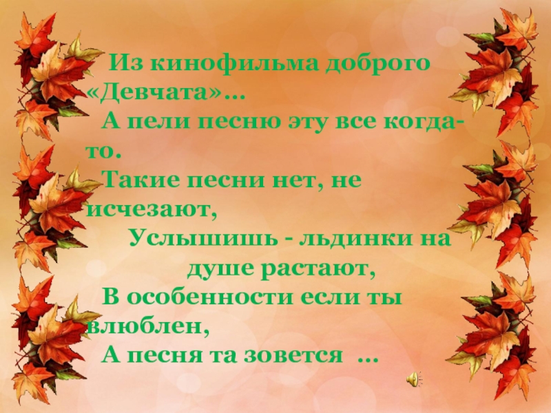 Из кинофильма доброго «Девчата»…А пели песню эту все когда-то.Такие песни нет, не исчезают,Услышишь - льдинки на